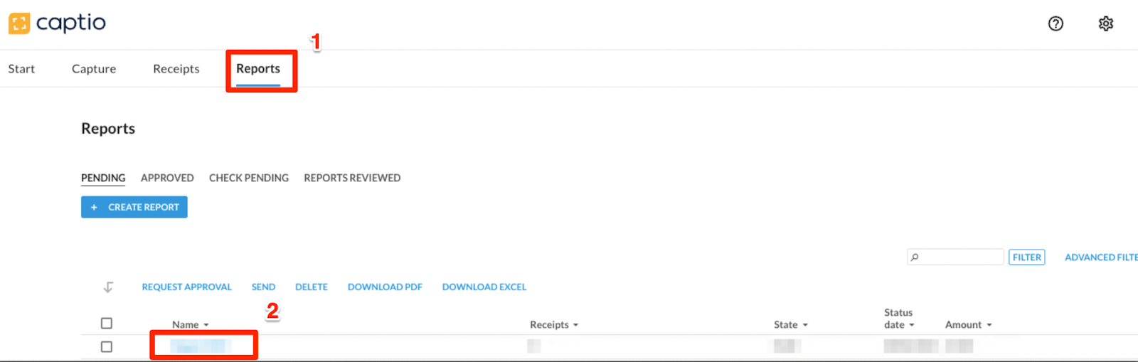 - Apri l’app Captio sul tuo dispositivo, quindi accedi alla sezione rapporti toccando l'icona del menu a tre linee situata nell'angolo in alto a sinistra dell'interfaccia dell'app.